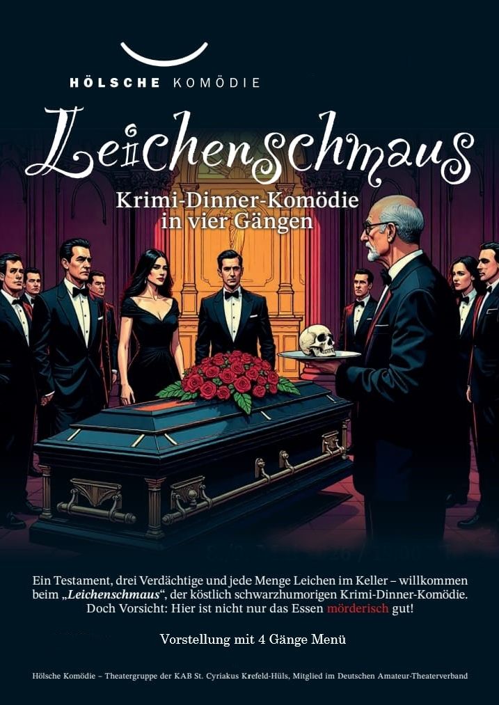 Unsere Schauspielerinnen und Schauspieler tauchen, auch auf Tournee, ab in die Unterwelt: Ein Testament, drei Verdächtige und jede Menge Leichen im Keller – willkommen beim „Leichenschmaus“, der köstlich schwarzhumorigen Krimi-Dinner-Komödie.
